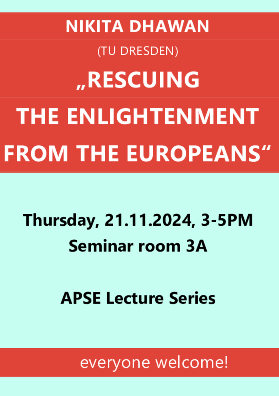 Postcolonial studies, which engage with the enduring legacies of global colonialism and imperialism, are currently facing intense criticism, particularly from right-wing circles but also from some liberal perspectives. These critiques claim that postcolonial studies opposes Enlightenment ideals and promotes nihilism, that it is Eurocentric, and that it is antisemitic. My presentation, however, contends that such accusations are often rooted in fundamental misunderstandings of the decolonization project. I aim to explore the "missed encounters" between postcolonial and Holocaust studies, while also clarifying the "mistaken identity" between postcolonial and decolonial approaches. Against the accusation of normative nihilism, my talk focuses on the contradictory consequences of the Enlightenment without adopting an anti-Enlightenment stance. For me, "rescuing the Enlightenment from Europe" involves recognizing that the Enlightenment is indispensable for the pursuit of critical projects, while still accounting for its "toxic legacy.
